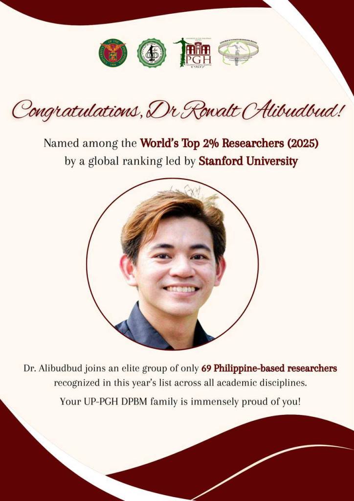 He was awarded the 2025 Outstanding Young Scientist for Psychiatry and Health Social Science by the National Academy of Science and Technology (Philippines) and was included in Stanford University’s list of the World’s Top 2% cited Scientists.